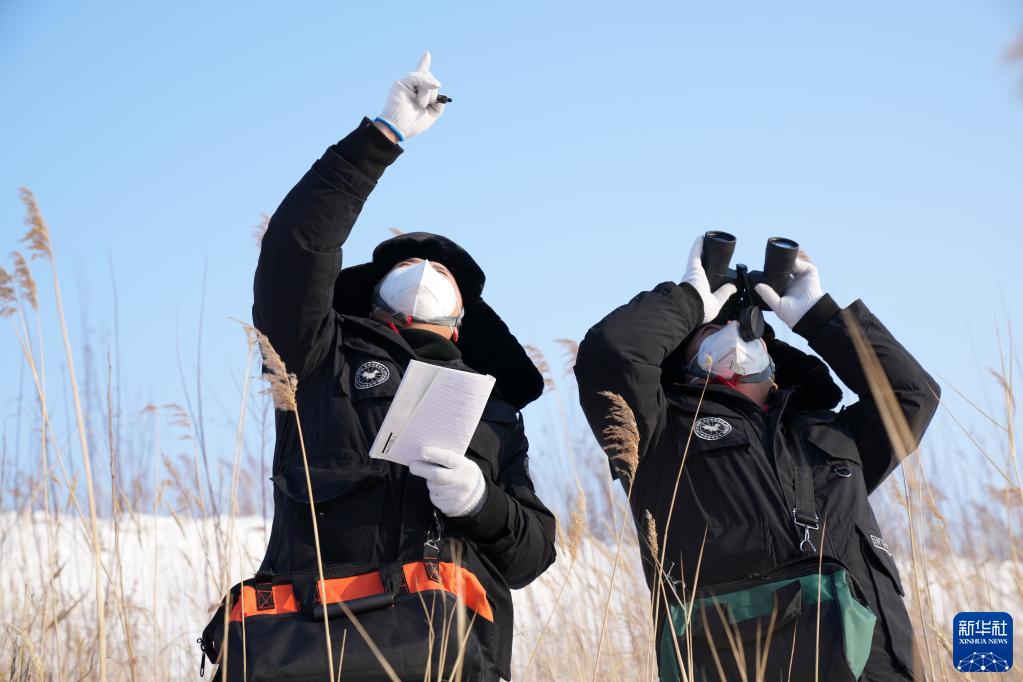 1月12日,國網(wǎng)撫遠市供電分公司抓吉供電所所長(cháng)白樺先(右)和工友費義偉在巡視東極線(xiàn)。