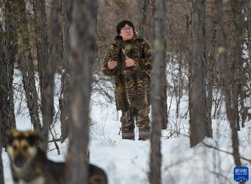 1月12日,覺(jué)樂(lè )在林區深處踩著(zhù)厚厚的積雪去尋找自己的鹿群。新華社記者 彭源 攝
