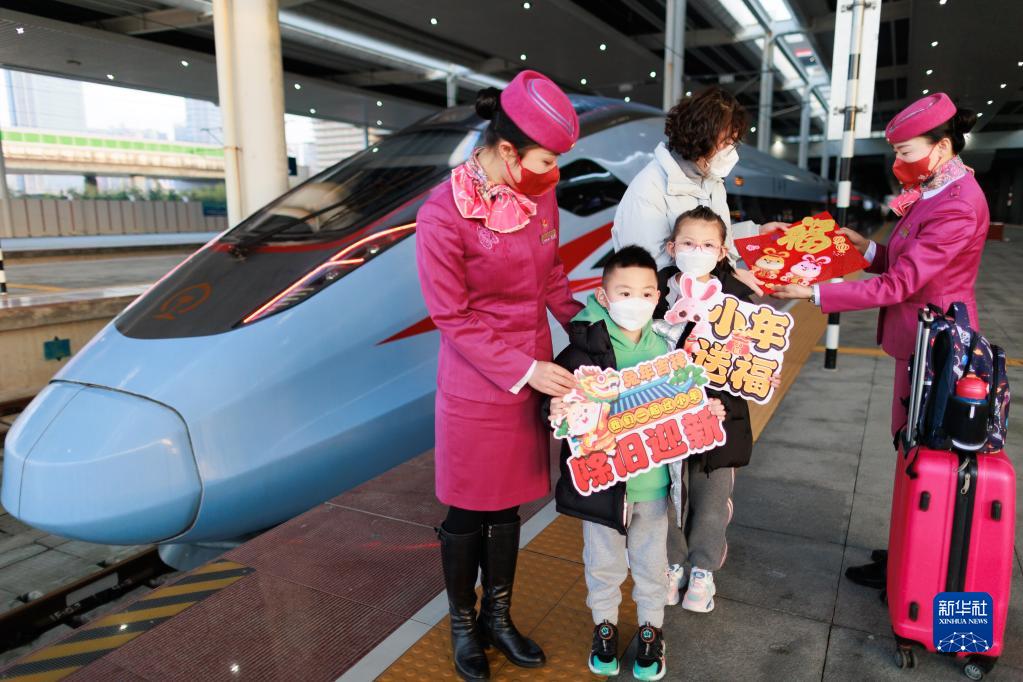 當日,在貴陽(yáng)北開(kāi)往成都南的C5980次復興號高鐵列車(chē)上,乘務(wù)員們熱情邀請旅客們參與剪窗花、貼年畫(huà)、做年糕、畫(huà)糖畫(huà)等活動(dòng)。濃濃的新春喜慶氣氛在車(chē)廂內洋溢,大家在歡聲笑語(yǔ)中一起迎接即將到來(lái)的小年。