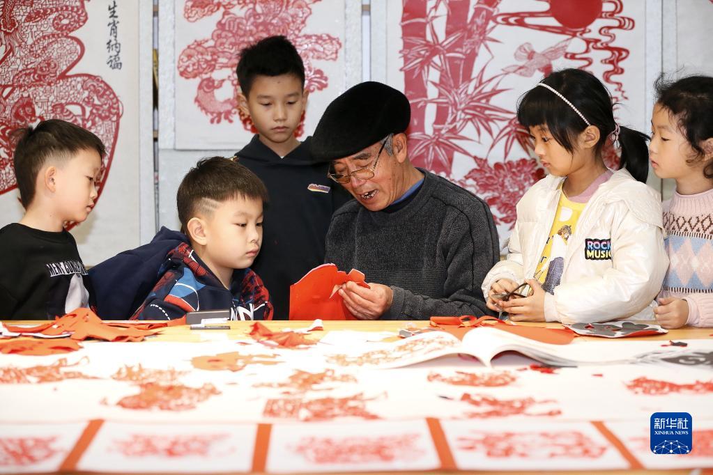當日,“手藝迎新春 年味有傳承”主題創(chuàng )作體驗活動(dòng)在山東省青島市即墨區新時(shí)代文明實(shí)踐中心舉行,來(lái)自當地的剪紙、柳編、烙畫(huà)等傳統技藝手藝人與孩子們共同了解春節習俗,學(xué)習手工技藝,喜迎新春到來(lái)。新華社發(fā)(梁孝鵬 攝)