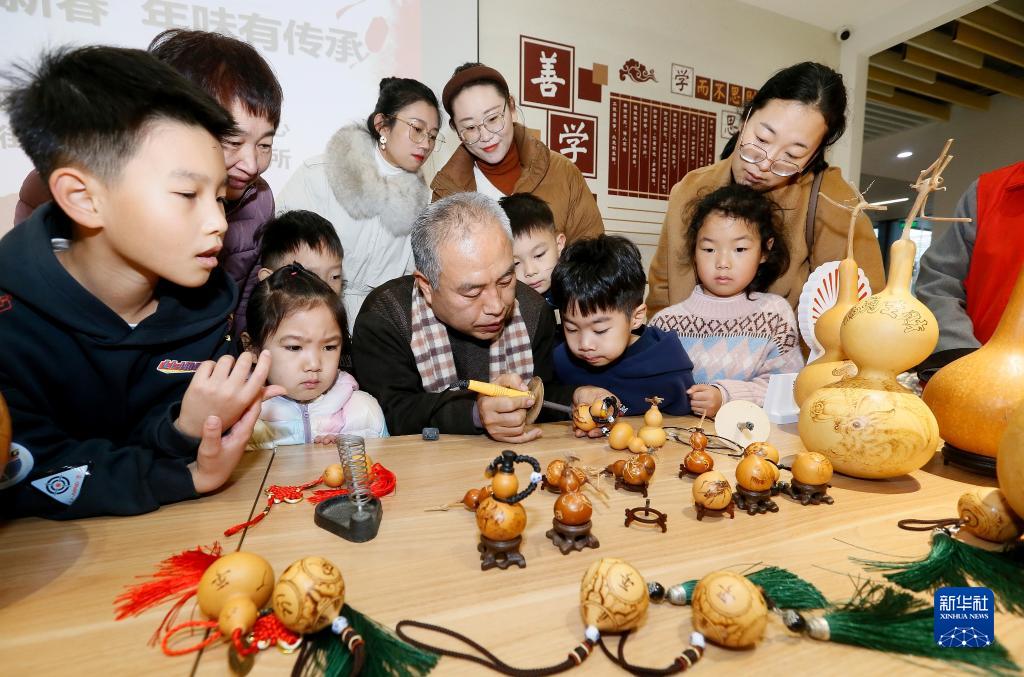 當日,“手藝迎新春 年味有傳承”主題創(chuàng )作體驗活動(dòng)在山東省青島市即墨區新時(shí)代文明實(shí)踐中心舉行,來(lái)自當地的剪紙、柳編、烙畫(huà)等傳統技藝手藝人與孩子們共同了解春節習俗,學(xué)習手工技藝,喜迎新春到來(lái)。新華社發(fā)(梁孝鵬 攝)