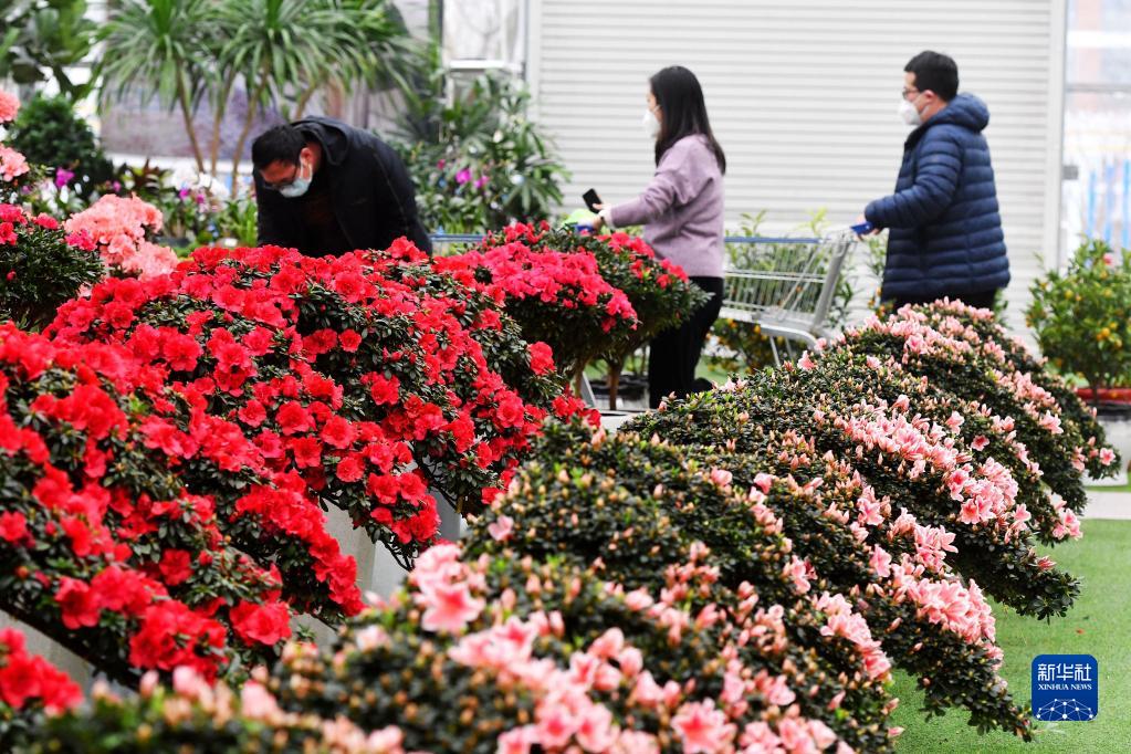 春節將至,各地花卉市場(chǎng)呈現出一派熱鬧景象,人們紛紛前往花卉銷(xiāo)售市場(chǎng)選購,節日氣氛漸濃。新華社發(fā)(俞方平 攝)