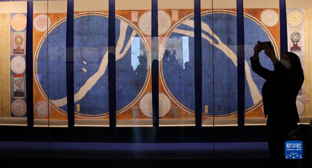 1月13日,“明清檔案”專(zhuān)題展出的明崇禎七年(1634)由大學(xué)士徐光啟和西洋傳教士湯若望共同參與繪制的《赤道南北兩總星圖》(仿制品)。