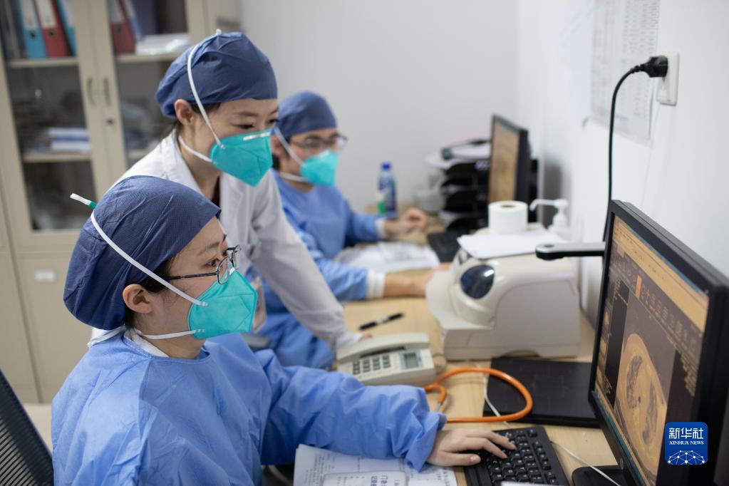 1月12日,在復旦大學(xué)附屬華山醫院虹橋院區急診搶救室醫生辦公室,醫生查看患者的胸部CT。
