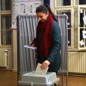1月13日,選民在捷克布拉格一處投票點(diǎn)投票。
