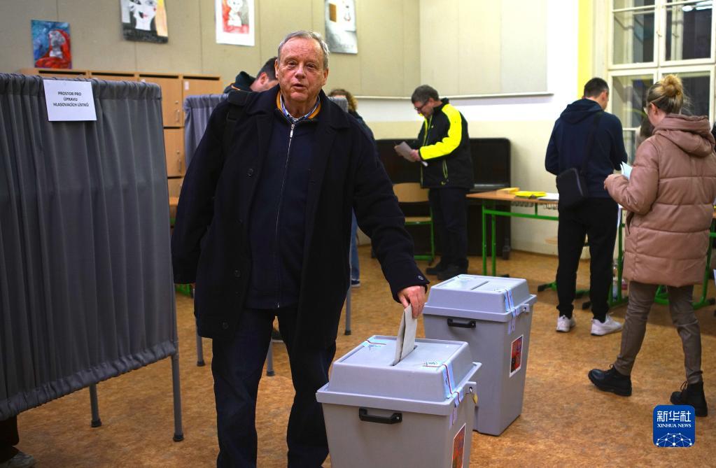 1月13日,選民在捷克布拉格一處投票點(diǎn)投票。