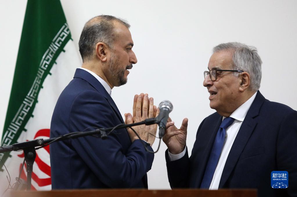 1月13日,在黎巴嫩貝魯特,黎巴嫩外長(cháng)哈比卜(右)和伊朗外長(cháng)阿卜杜拉希揚共同出席新聞發(fā)布會(huì )。