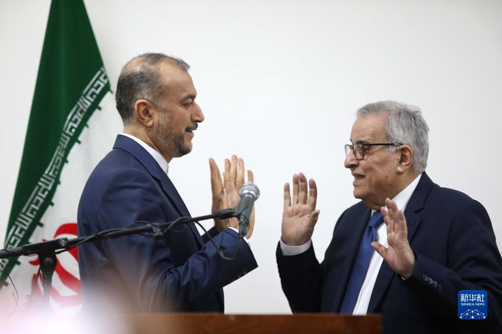 1月13日,在黎巴嫩貝魯特,黎巴嫩外長(cháng)哈比卜(右)和伊朗外長(cháng)阿卜杜拉希揚共同出席新聞發(fā)布會(huì )。