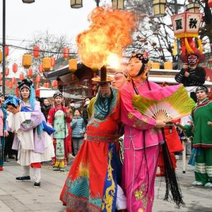 1月14日,演員在西安市永興坊景區表演傳統社火。
