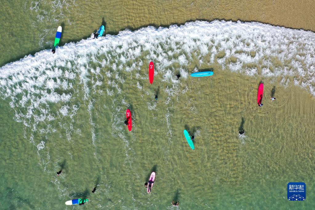 冬日的海南萬(wàn)寧艷陽(yáng)高照、溫暖如夏,各地游客來(lái)到這里體驗沖浪。得益于獨特的地理和氣候優(yōu)勢,沖浪已成為海南萬(wàn)寧旅游的一張靚麗名片。