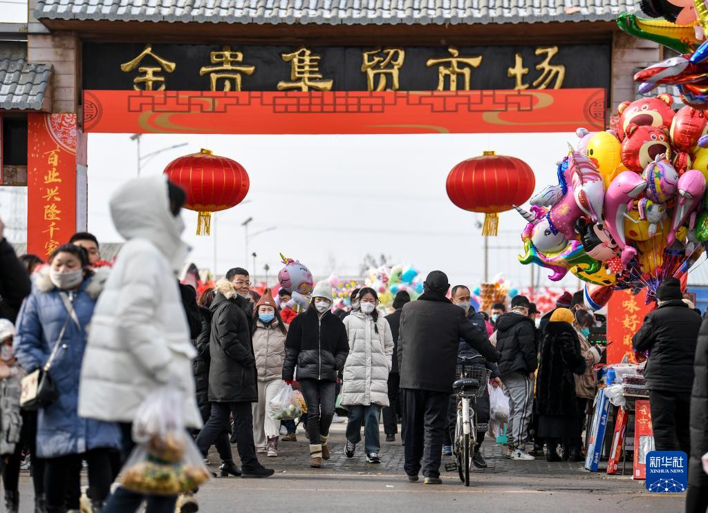 當日是農歷小年,寧夏銀川市賀蘭縣百年鄉村大集金貴大集上貨品琳瑯滿(mǎn)目,洋溢著(zhù)濃濃年味,吸引人們前來(lái)選購年貨。