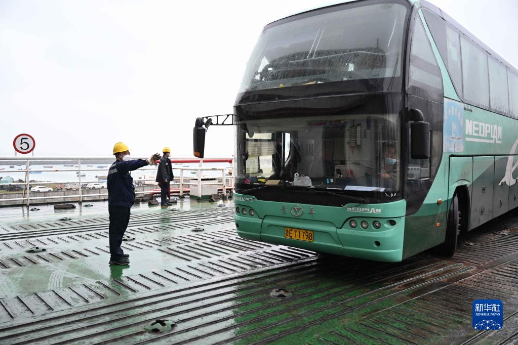 在粵海鐵路輪渡??看a頭時(shí),劉昱指揮車(chē)輛駛離甲板(1月8日攝)。