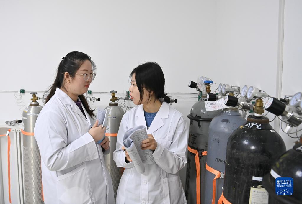 1月8日,阿克達拉國家大氣本底站觀(guān)測員董垠希(右)和陶瑞在實(shí)驗室填寫(xiě)值班記錄。