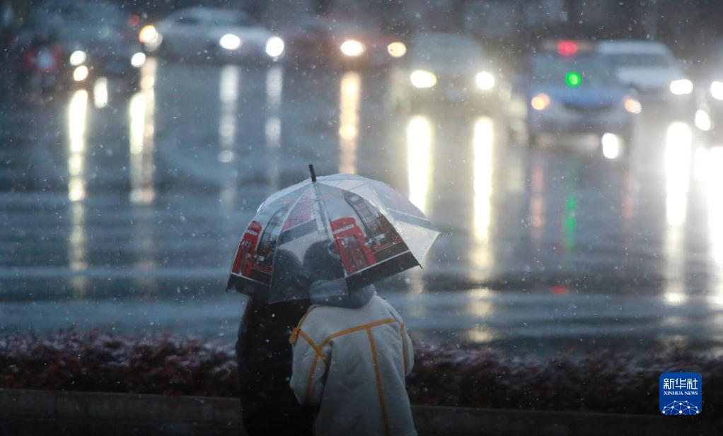 1月14日,在江蘇省揚州市,市民冒雪出行。
