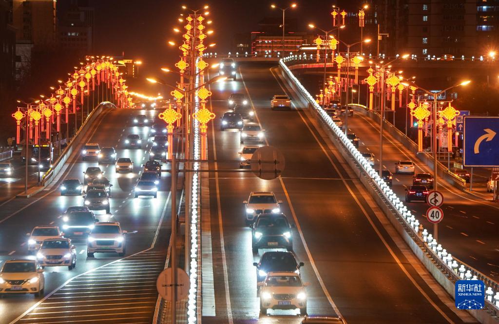 北京木樨地橋上掛滿(mǎn)“中國結”燈飾(1月14日攝)。