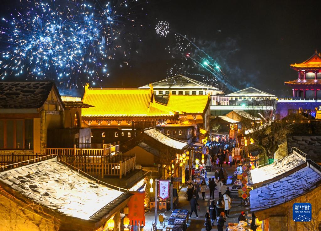 游客在金延安文化旅游產(chǎn)業(yè)園內游覽(1月14日攝)。