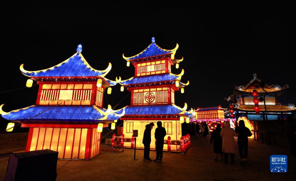 1月14日,人們在第36屆西安城墻新春燈會(huì )上參觀(guān)游玩。