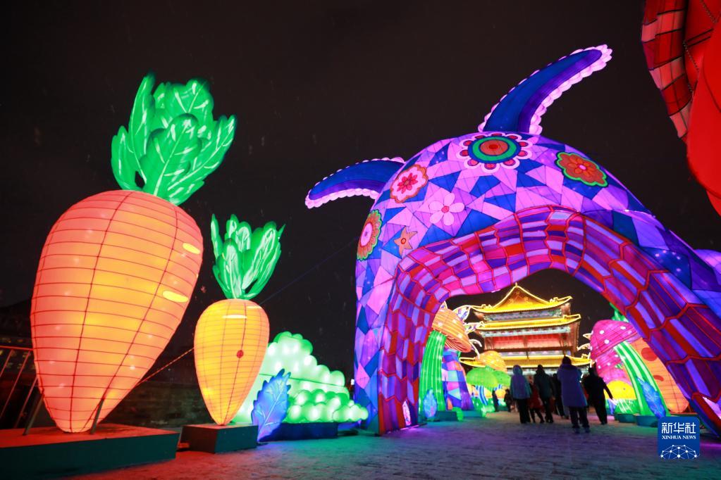 1月14日,人們在第36屆西安城墻新春燈會(huì )上參觀(guān)游玩。