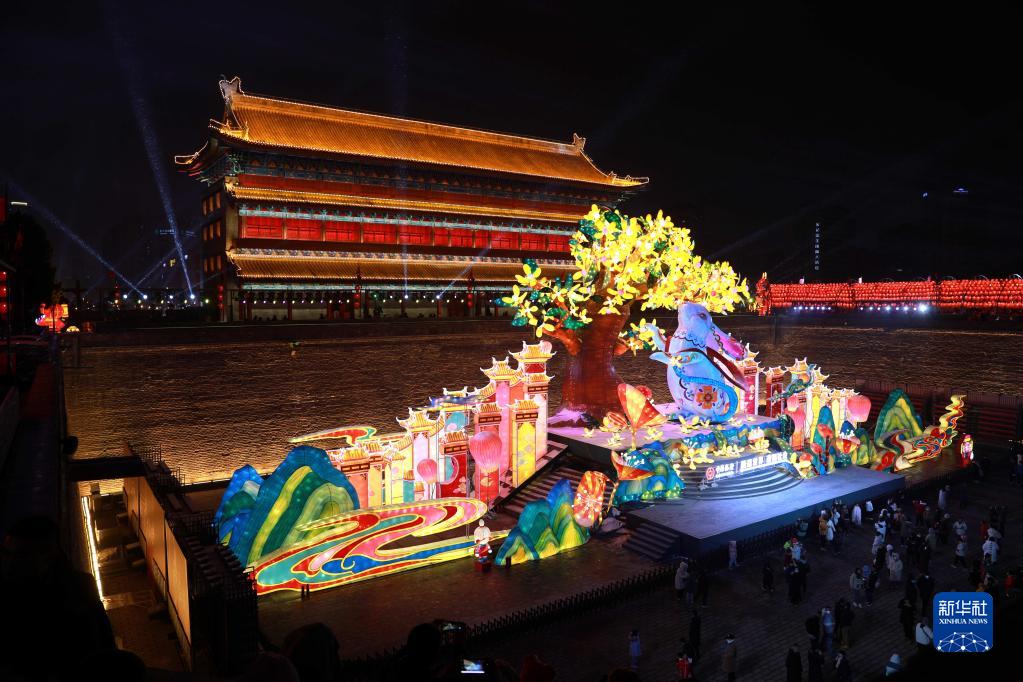 1月14日,人們在第36屆西安城墻新春燈會(huì )上參觀(guān)游玩。