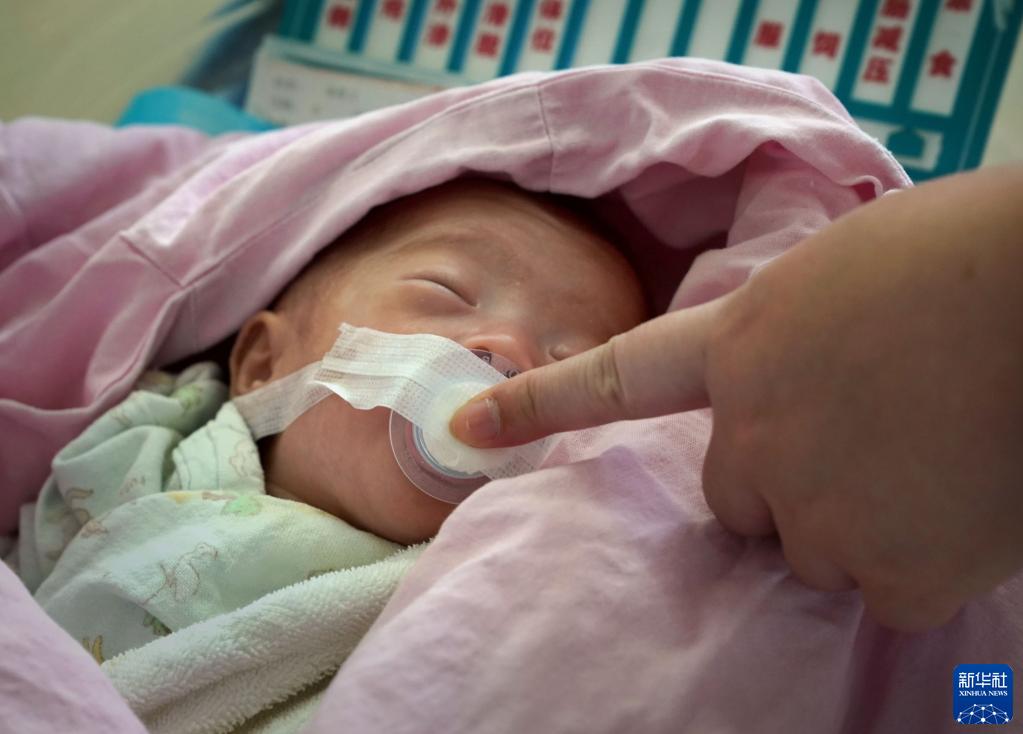醫護人員在對患兒進(jìn)行非營(yíng)養吸吮訓練安撫患兒(1月10日攝)。
