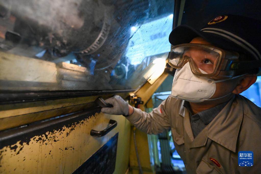 1月14日北方小年夜,烏魯木齊車(chē)輛段動(dòng)車(chē)組運用所檢修庫內燈火通明,白天馳騁天山南北的動(dòng)車(chē)在這里集結,一群青年機械師在連夜進(jìn)行檢查、測試、維修工作,以保障動(dòng)車(chē)運行安全。