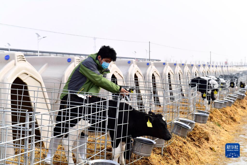 1月15日,在衛崗乳業(yè)日照鮮純生態(tài)牧業(yè)有限公司,工作人員為犢牛打針。