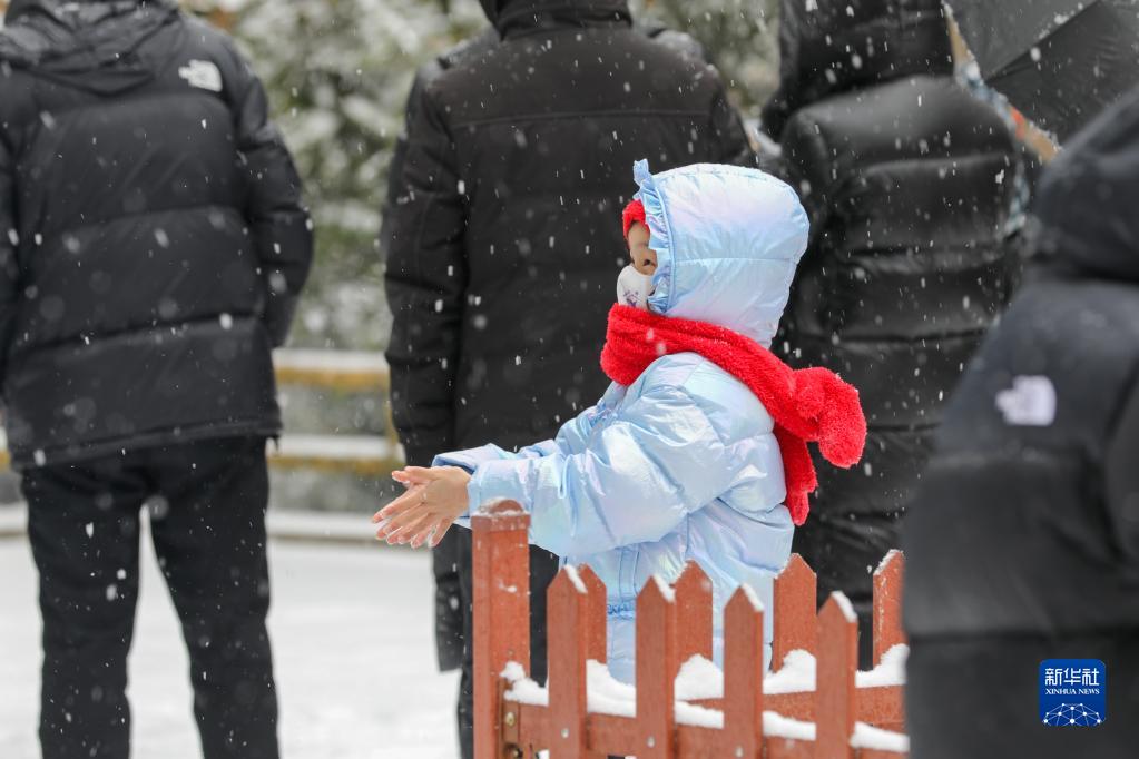 當日,湖南張家界國家森林公園大雪紛飛,銀裝素裹,宛如畫(huà)卷,吸引不少游客。