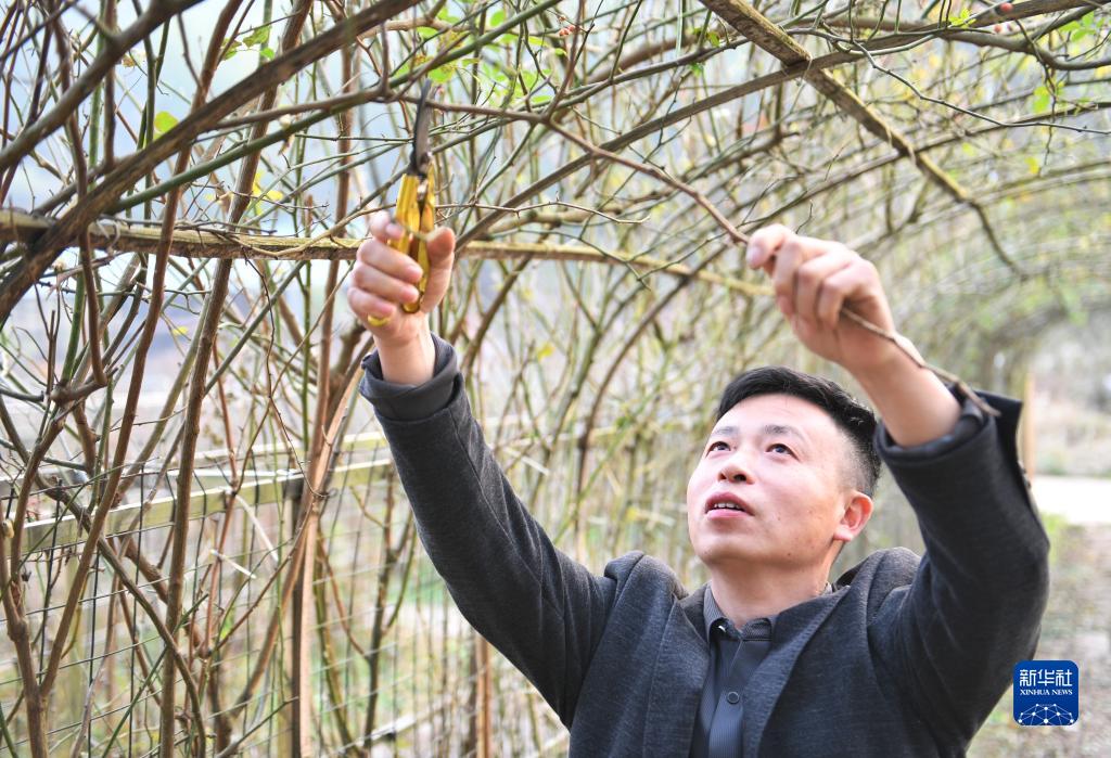 1月10日,曾凡江在“花海迷宮”內修枝。