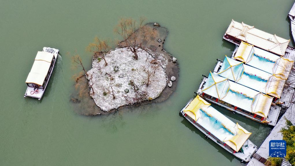 這是1月15日拍攝的江蘇揚州瘦西湖雪景(無(wú)人機照片)。