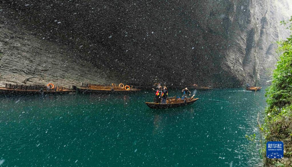 1月15日,游人在湖北省鶴峰縣屏山峽谷賞雪。
