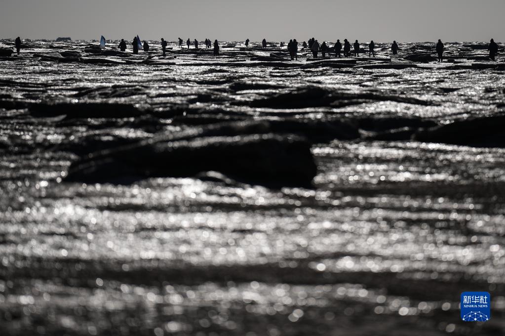 1月15日,業(yè)余選手在體驗冰凌徒步。