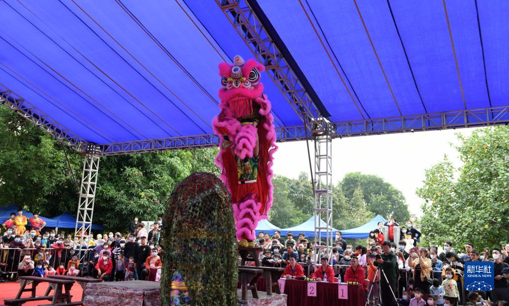 當日,由廣州市黃埔區九佛街道主辦的獅王爭霸賽活動(dòng)在蓮塘古村舉行,參賽獅隊輪番登場(chǎng),展示“絕活”,營(yíng)造出歡樂(lè )祥和、熱鬧喜慶的節日氛圍。