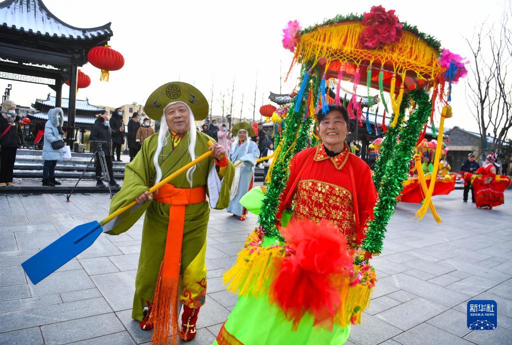 春節臨近,安徽省亳州市舉辦民俗表演迎新春活動(dòng),民間藝人表演舞龍、斗驢、抬花轎、扭秧歌等民俗節目,迎接新春佳節的到來(lái)。