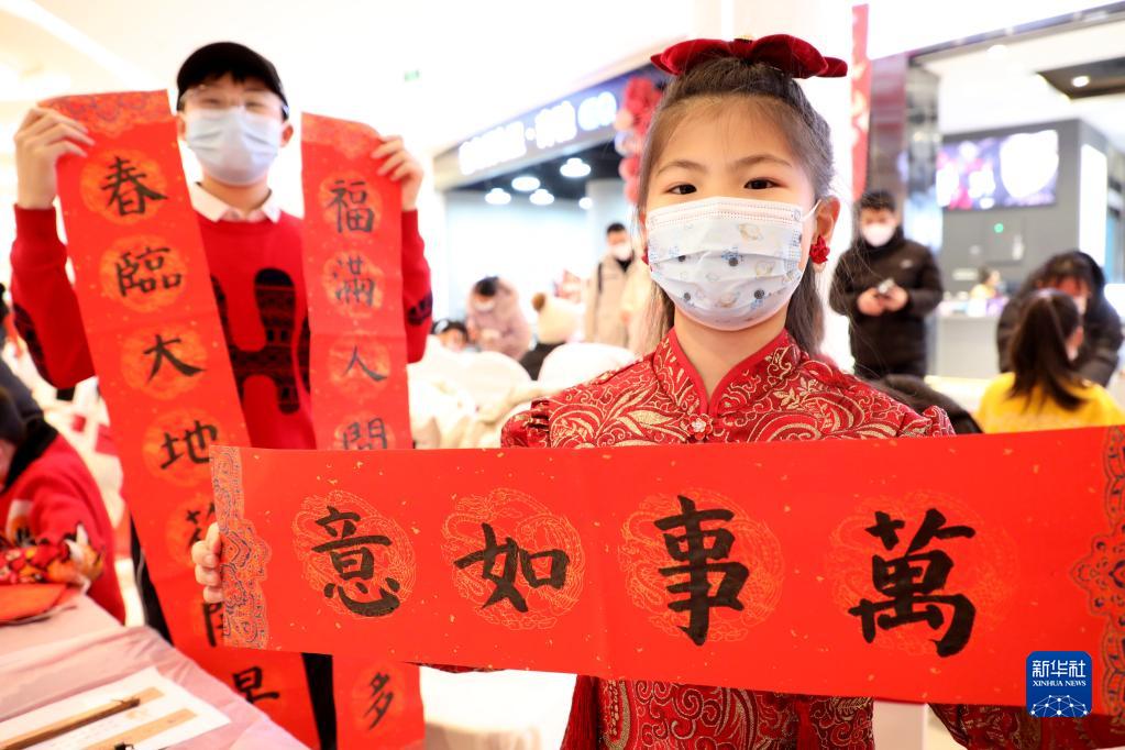 春節臨近,人們書(shū)寫(xiě)傳統的春聯(lián)和福字,喜迎新春。