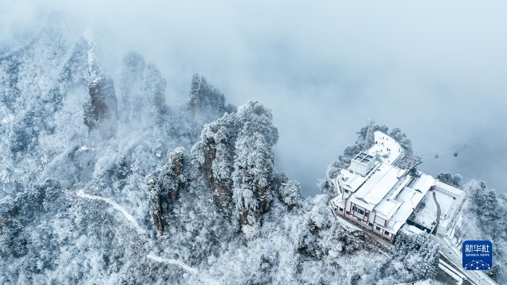 當日,位于湖南張家界的天子山被冰雪覆蓋,峰林銀裝素裹,美如畫(huà)卷。