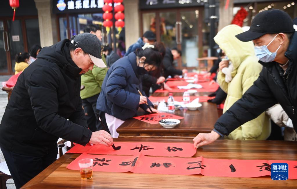 新登鎮宋韻文化特色街區的送春聯(lián)活動(dòng)(1月16日攝)。
