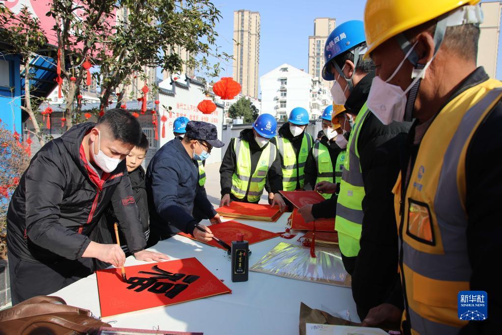 1月16日,安徽省文聯(lián)文藝志愿服務(wù)隊來(lái)到中鐵四局合肥新橋機場(chǎng)S1線(xiàn)先行段項目工地,為一線(xiàn)建設者寫(xiě)春聯(lián)、送福字。