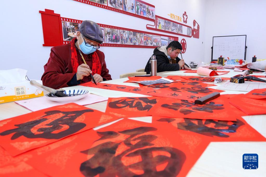 春節臨近,多地組織書(shū)法志愿者走進(jìn)社區、工地等場(chǎng)所,為人們書(shū)寫(xiě)春聯(lián)和福字,迎接春節的到來(lái)。