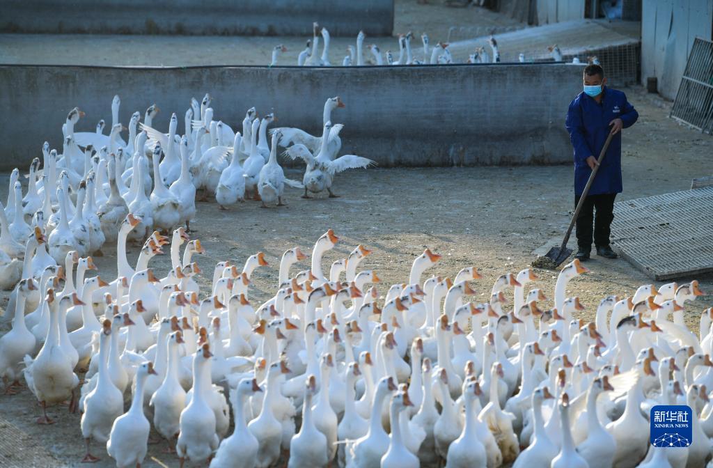 工人在貴州省錦屏縣銅鼓鎮馬臺生態(tài)種鵝養殖基地清掃鵝舍(2022年12月19日攝)。