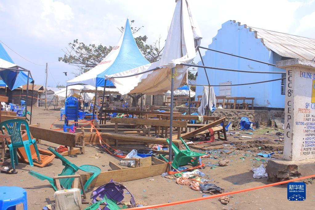 這是1月16日在剛果(金)東部北基伍省卡辛迪市拍攝的炸彈襲擊現場(chǎng)。