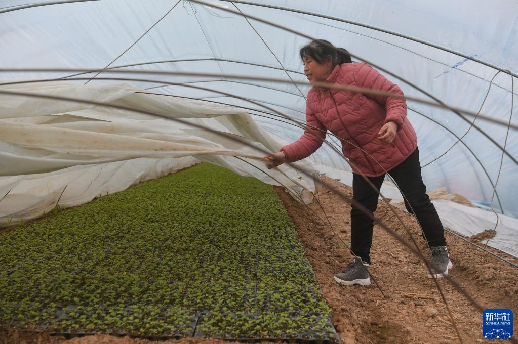 1月16日,陜西省西安市臨潼區神東村村民在大棚管護作物。