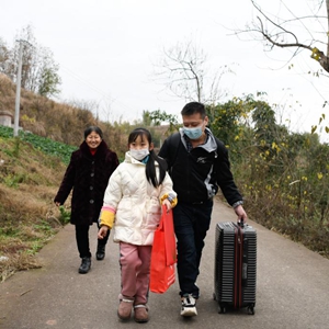 專(zhuān)車(chē)一路北行,盡管全程高速,但1600余公里的路程著(zhù)實(shí)讓廖大友感到疲憊。1月15日下午2點(diǎn),專(zhuān)車(chē)終于抵達富順縣客運中心。來(lái)不及休息,廖大友繼續轉乘當地交通部門(mén)組織的“小黃車(chē)”,往家的方向駛去。家中,65歲的母親和8歲的女兒已經(jīng)等了他整整一年。