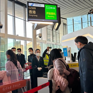1月17日上午9時(shí)許,前往香港的CZ309航班搭乘100多名乘客騰空而起,中國“新國門(mén)”北京大興國際機場(chǎng)“暫?!苯甑膰H及地區客運航班“重啟”,國際及港澳臺地區客運航線(xiàn)正式恢復。