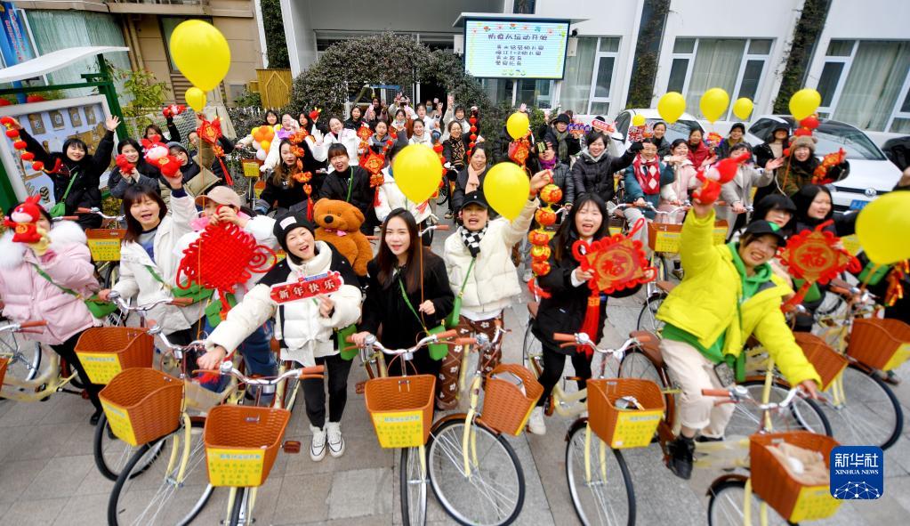 1月17日,浙江省臺州市路橋區路南街道秀水銘苑幼兒園的老師們沿著(zhù)大街小巷快樂(lè )騎行,喜迎新年的到來(lái)。