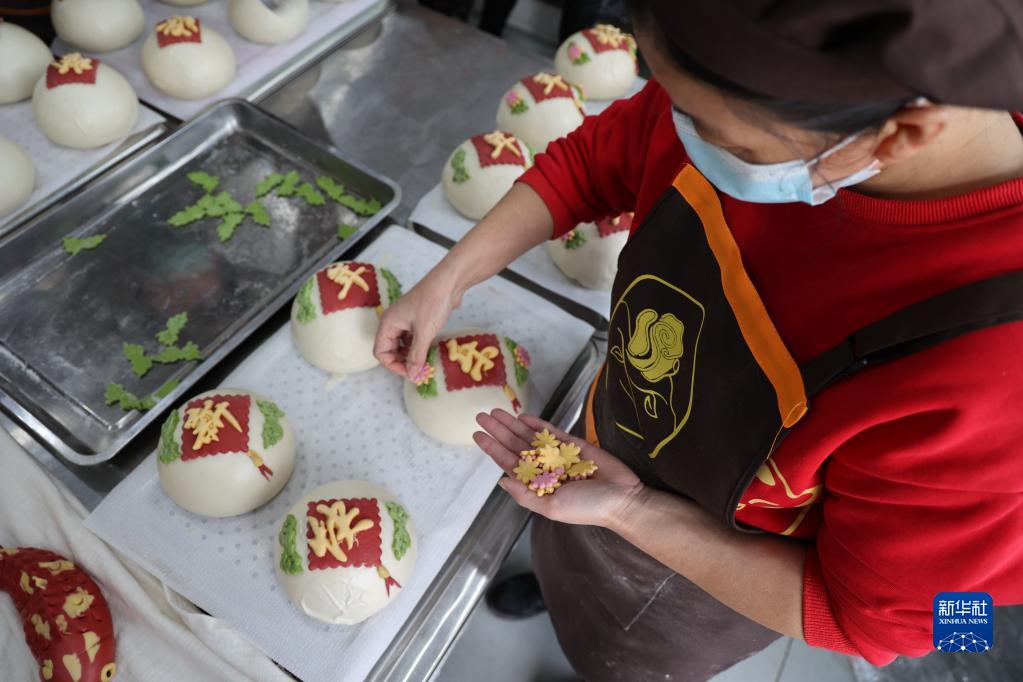 1月17日,山東省濱州市惠民縣何坊街道一家花饃店的工作人員在趕制花饃。