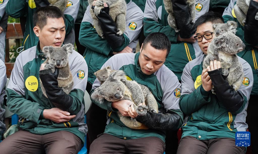 當日,廣州長(cháng)隆野生動(dòng)物世界的7代66只考拉大家族集體亮相,喜迎農歷春節。其中,出生于2004年的“淘淘”是首批從澳大利亞漂洋過(guò)海來(lái)到中國的考拉當中的一只,出生于2022年的“抱抱”是長(cháng)隆考拉第七代新生寶寶。