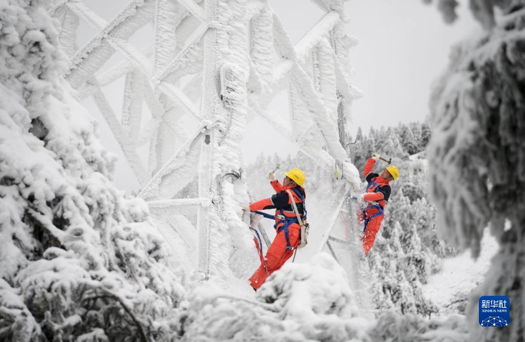 寒潮來(lái)襲,地處湖北省西南部的鶴峰縣出現雨雪降溫天氣,高山地區電力設施覆冰積雪嚴重。當地組織應急搶險人員及時(shí)進(jìn)行除雪作業(yè),保障輸電線(xiàn)路安全運行,守護萬(wàn)家燈火。