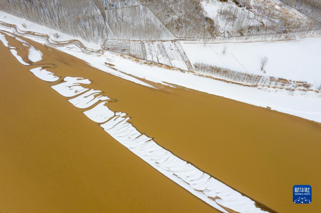 1月14日拍攝的黃河山東高青段雪景(無(wú)人機照片)。