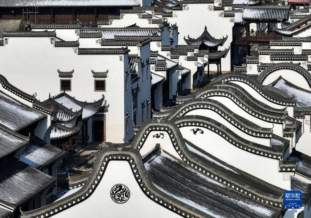 1月16日拍攝的湖北省孝感市云夢(mèng)縣祥云灣古建筑群雪后景色(無(wú)人機照片)。