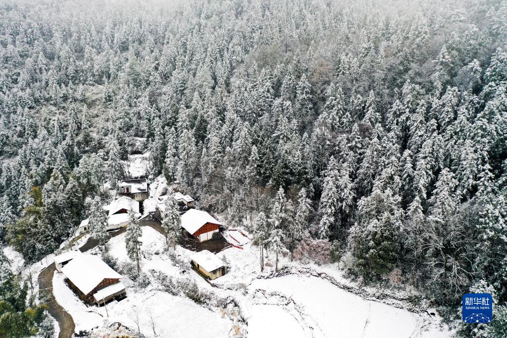 1月15日在貴州省遵義市正安縣鳳儀街道大堡社區拍攝的雪景(無(wú)人機照片)。